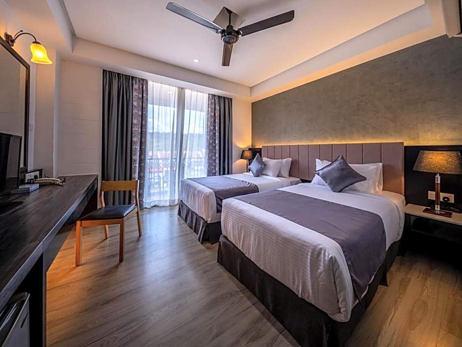 Executive Deluxe (Double or Twin) is 215 square feet and includes either 2 single beds 80-130 width or a queen-size bed 150-154 width plus ironing set.